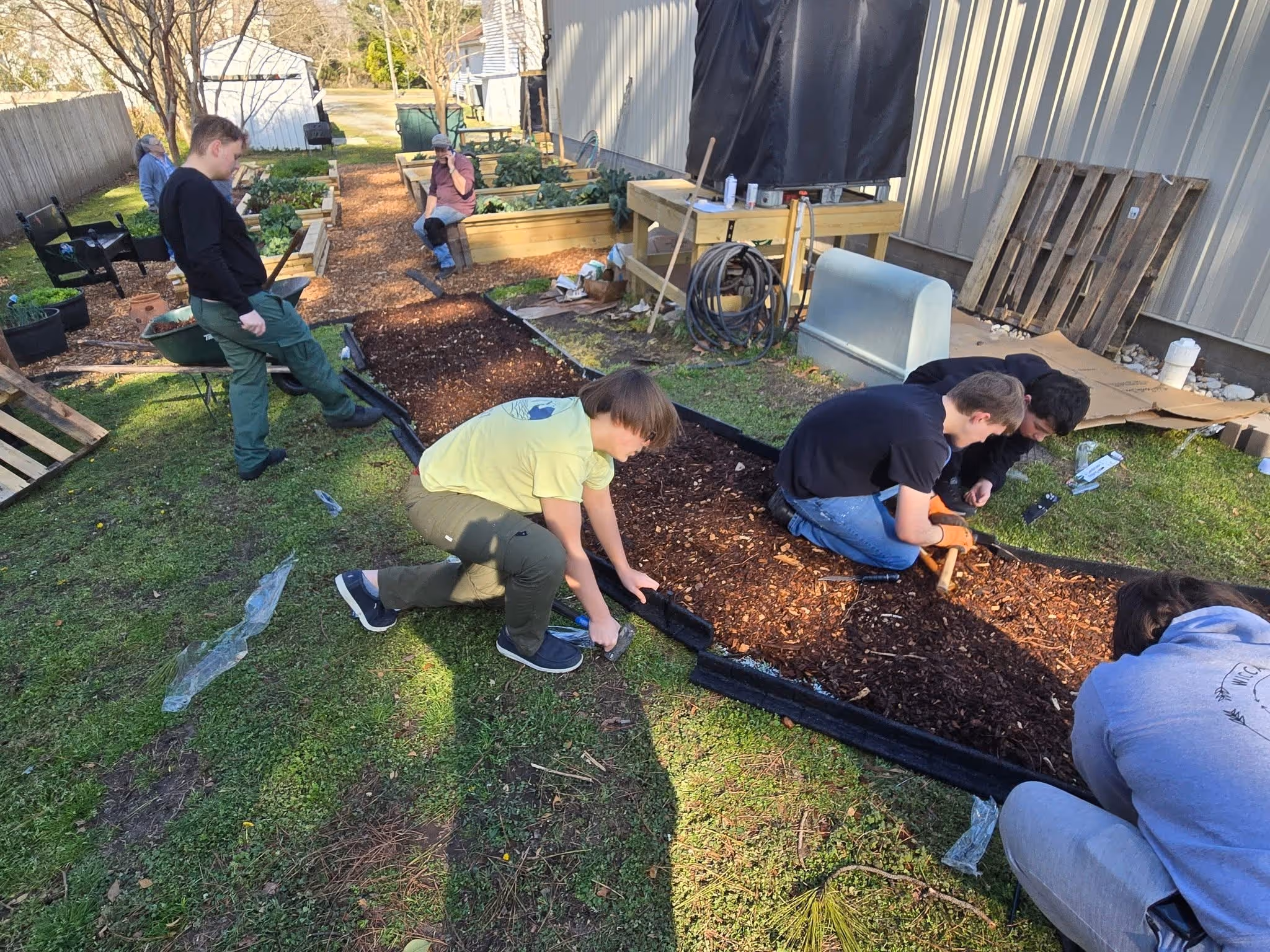 In partnership with our Boy Scout troop, the garden has expanded to include a native and pollinator-friendly planting area, helping to restore local ecosystems and educate others about the importance of biodiversity.